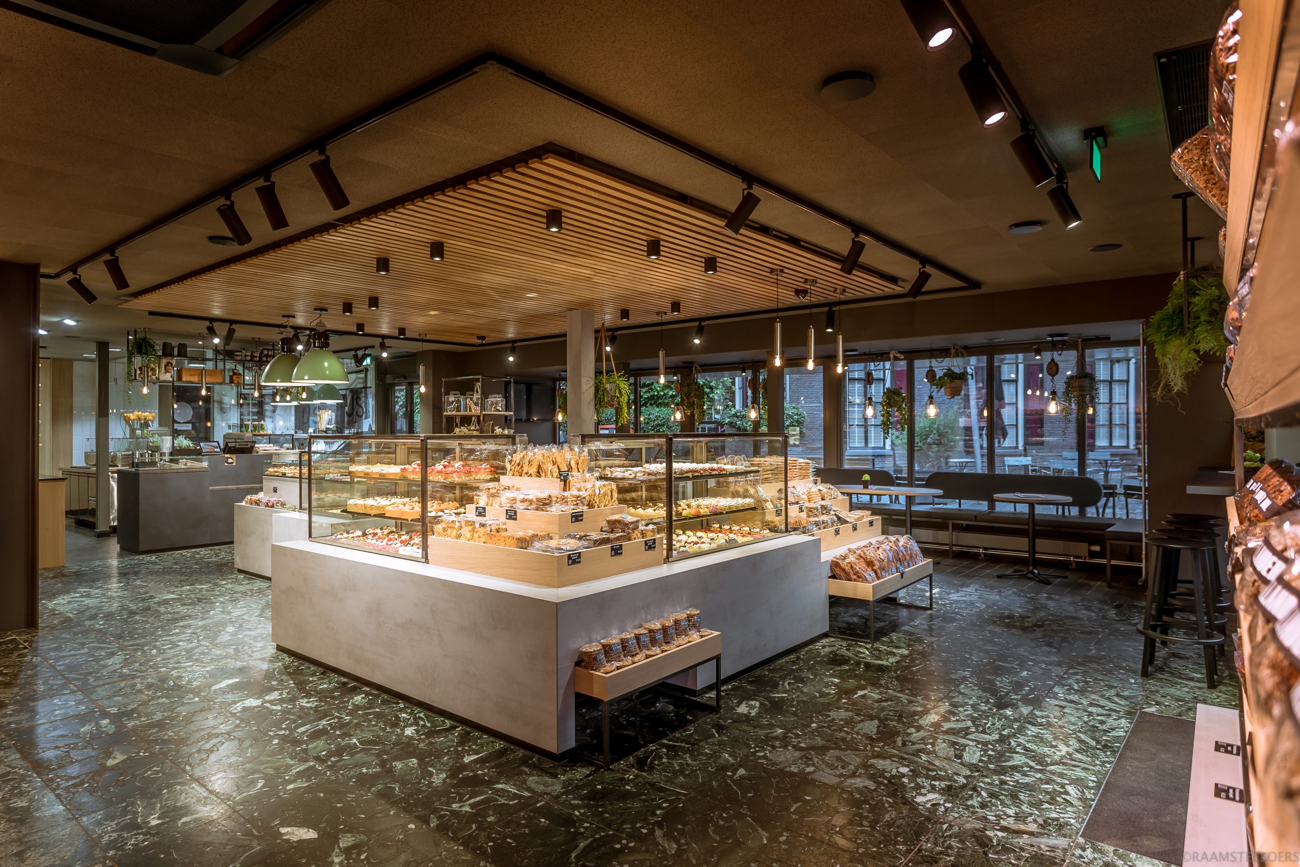 De ambachtelijke ‘echte bakker’, waar u live geniet van het vakmanschap van een stel enthousiaste bakkers, combineert hun liefde voor brood, banket, ijs en oliebollen in een winkel én lunchroom. Er is door Revitoo afbouw B.V. gekozen voor een een industriële, doch sfeervolle uitstraling, OWA RAW Concrete plafondpanelen mogen hierin niet ontbreken. Naast het feit dat OWA RAW in deze bakkerij zorgt voor een karakteristiek totaalplaatje, verbetert het ook de ruimteakoestiek. Bovendien wordt er dankzij een absorptiewaarde van 0.70 een betere werk- en winkelomgeving gecreëerd voor werknemers en klanten.